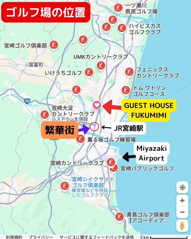当宿泊施設はゴルフをするのに便利な立地にあります!ぜひ宮崎でゴルフを楽しんでください!